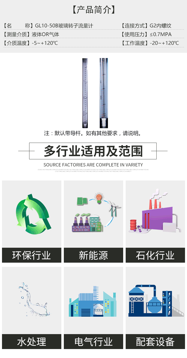 GL10-50B螺紋不銹鋼玻璃轉子流量計測液體氣體是一款采用直讀顯示,垂直螺紋全不銹鋼玻璃轉子流量計。