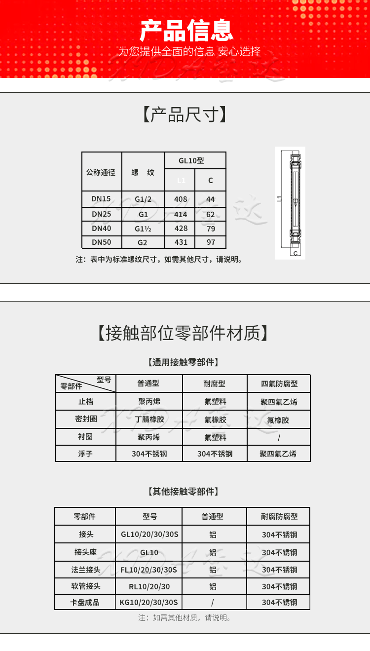①接受定制定做:其他螺紋尺寸(NPT,G或外螺紋等)