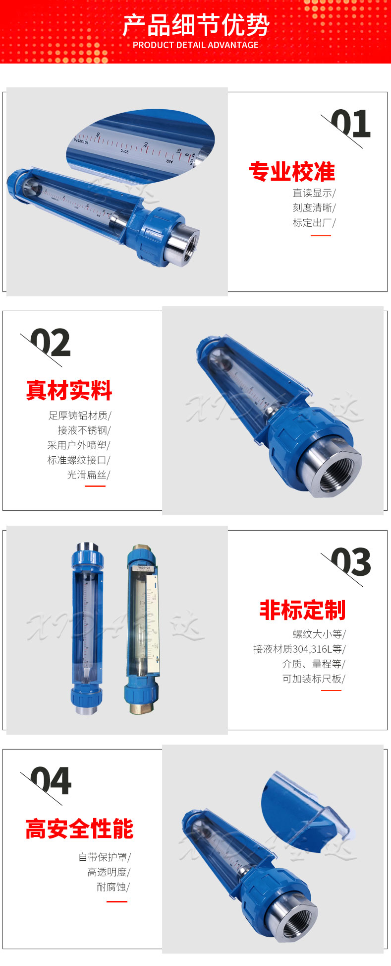 1.優勢:自帶保護罩,可加裝標尺板。刻度清晰,外形美觀,標定出廠,市場通用。