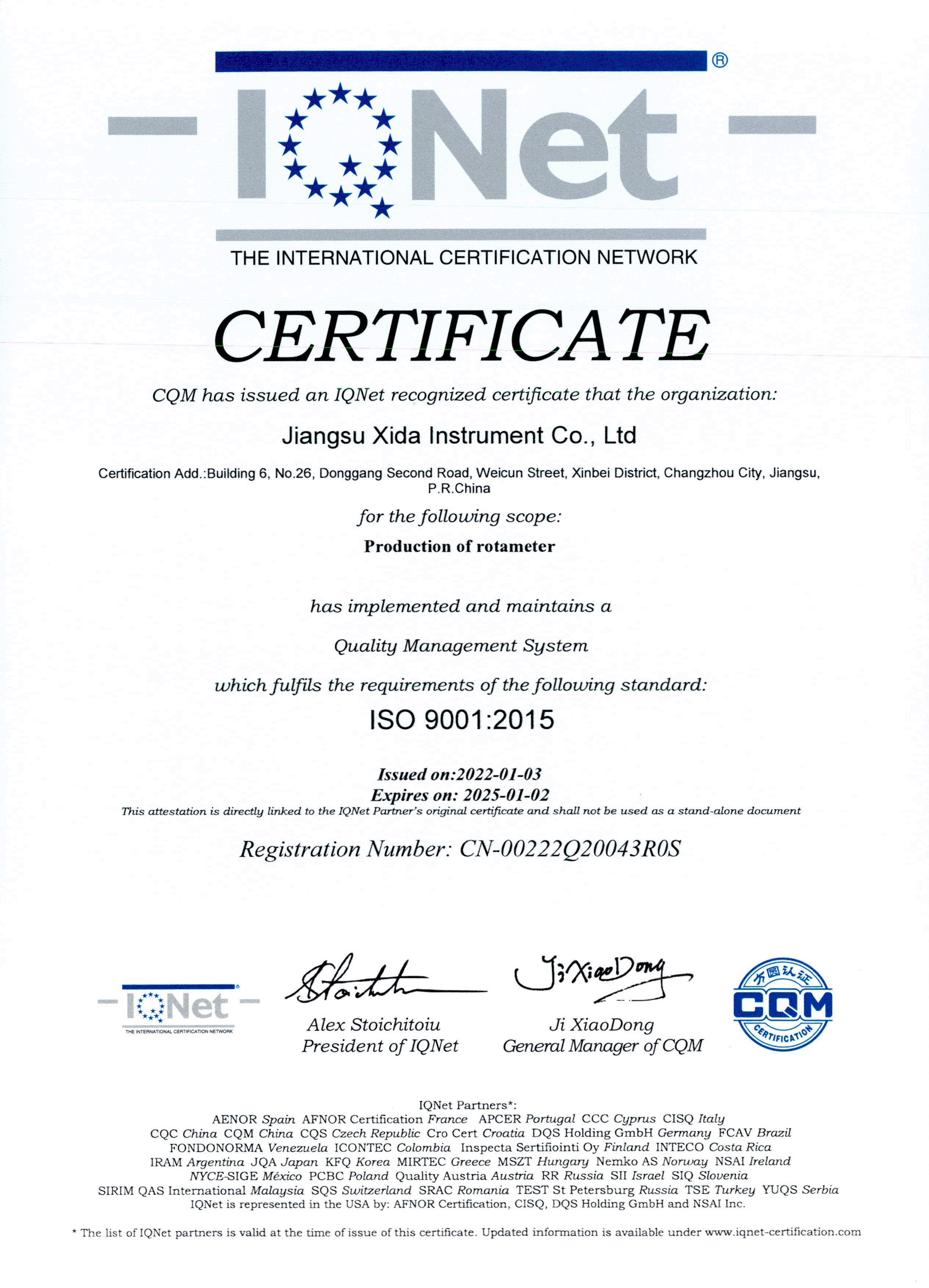 璽達儀表ISO9001:2015證書